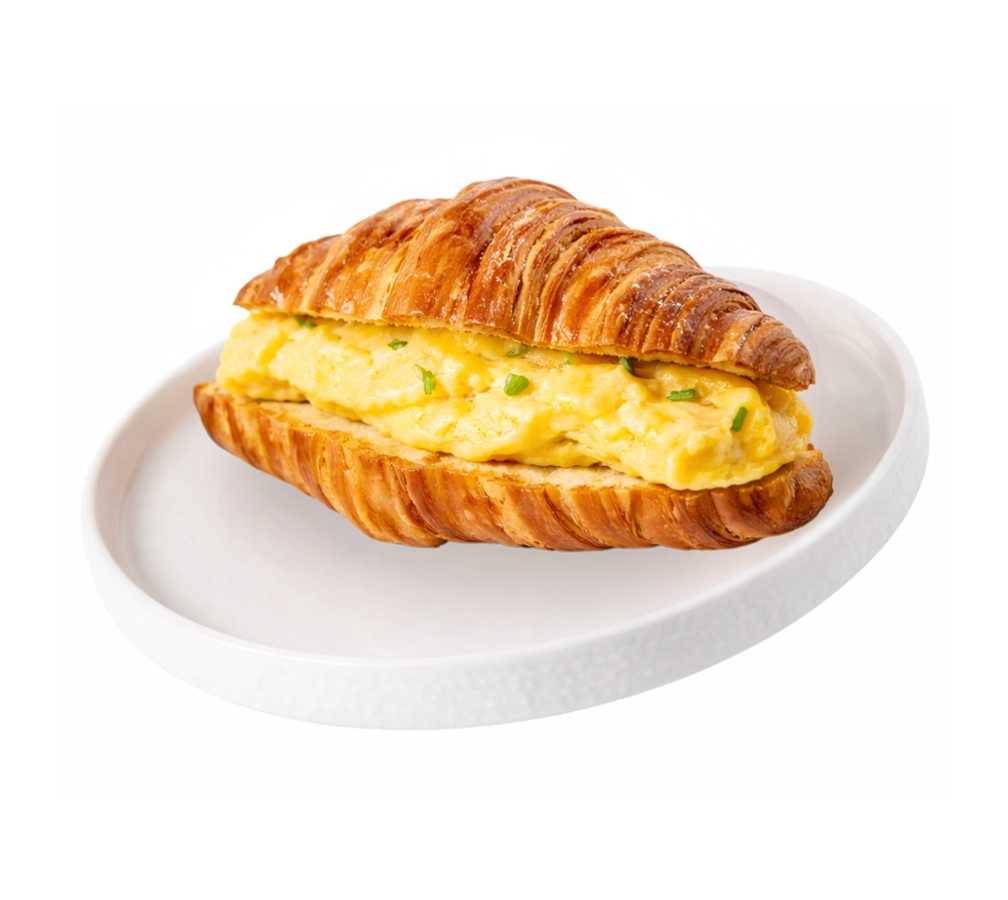 Crispy Croissant, Soft Scrambled Eggs, Creamy Truffle Mushroom Sauce
